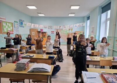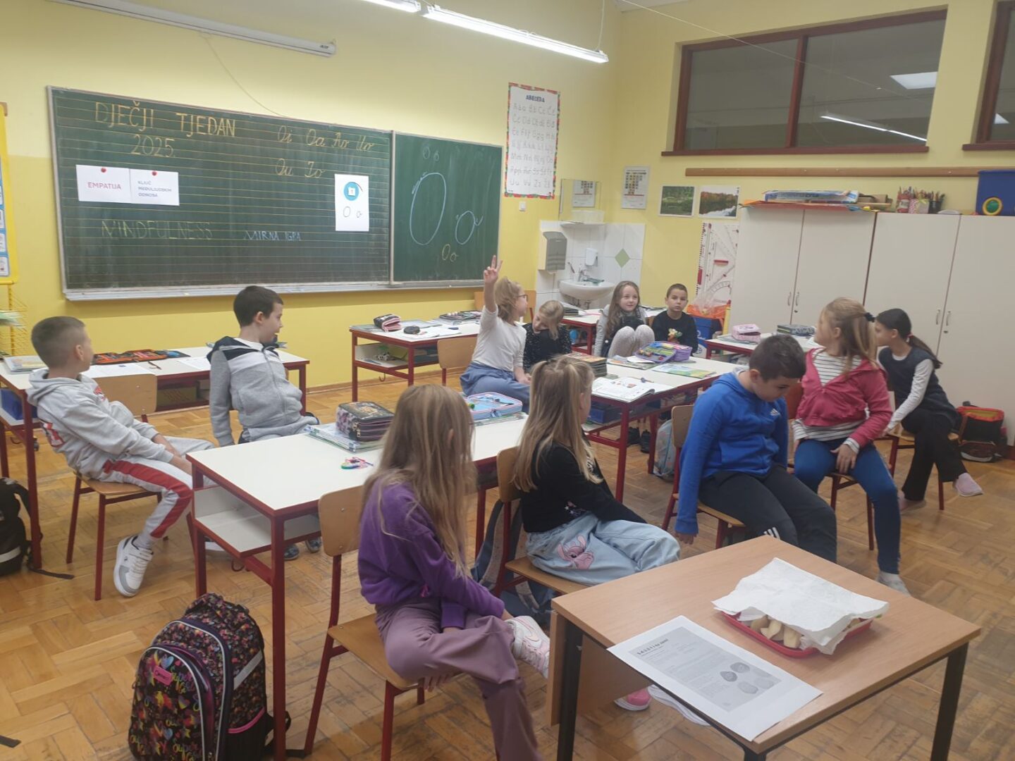Tjedan smo započeli aktivnostima usmjerenima na osnaživanje pojedinca – učenici su sudjelovali u vježbama mindfulnessa, tehnikama disanja i sl. Učili smo kako se opustiti, osvijestiti svoje misli i osjećaje te koliko je važno uzeti trenutak samo za sebe. Djeca su kroz vođene vježbe otkrila koliko im takvi trenuci mogu pomoći da se osjećaju smirenije i zadovoljnije.