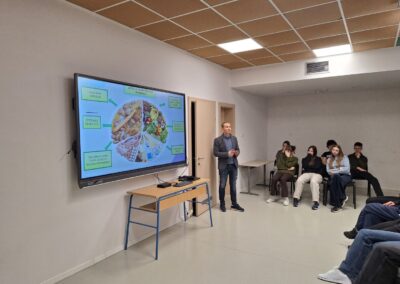 U sklopu projekta „Čarobna osmica“, učenici osmih razreda su u četvrtak, 9. travnja, sudjelovali na edukativnom predavanju o poremećajima prehrane i važnosti pravilne prehrane. Tijekom predavanja učenici su imali priliku saznati više o zdravim prehrambenim navikama, posljedicama nepravilne prehrane te načinima kako očuvati svoje zdravlje kroz svakodnevne izbore. Nutricionisti su odgovarali na brojna učenička pitanja te pružili konkretne savjete prilagođene njihovoj dobi. Ovakva predavanja doprinose razvoju svijesti o važnosti brige za vlastito zdravlje, osobito u razdoblju odrastanja kada se formiraju životne navike. Poseban naglasak stavljen je na koncept „Tanjur pravilne prehrane“, kojim se učenicima na jednostavan i razumljiv način prikazuje kako bi trebao izgledati uravnotežen obrok.