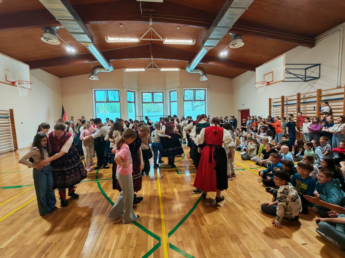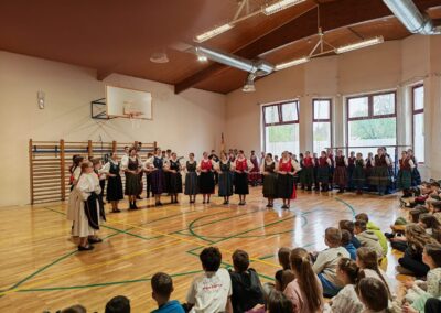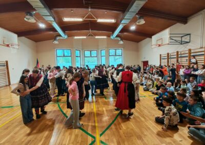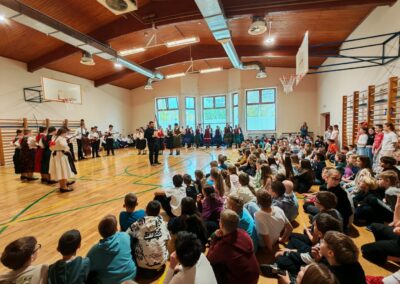 Članovi DFD “Sončece” i TVK Schlitz predstavili su učenicima trećih, četvrtih, petih i šestih razreda škole bogatstvo i raznolikost hrvatskih i njemačkih folklornih plesova.