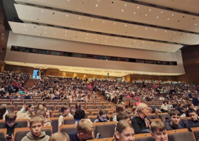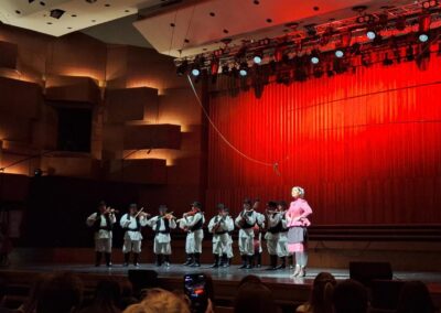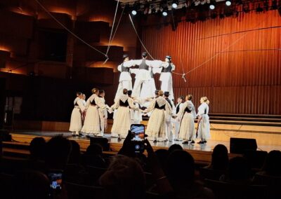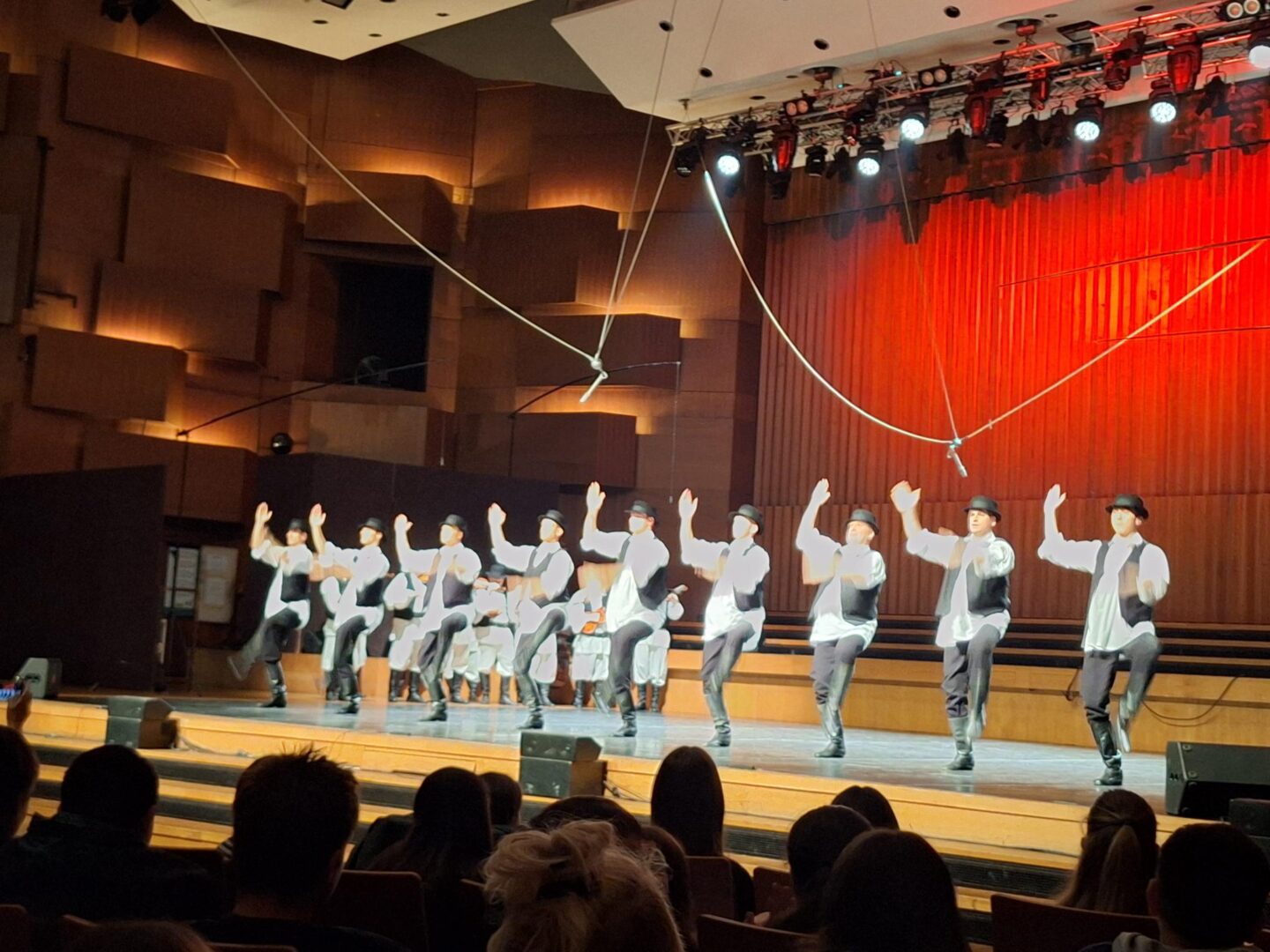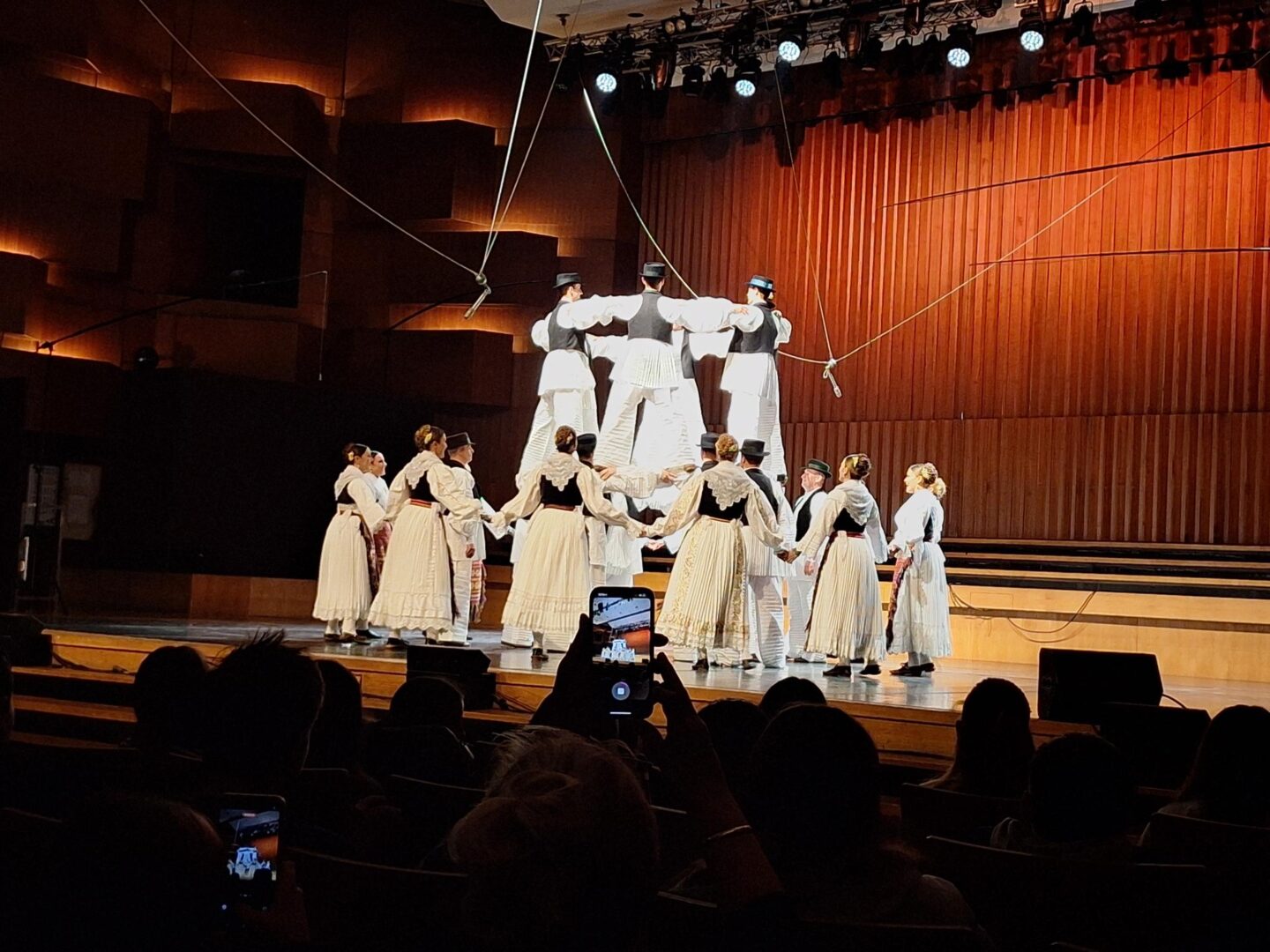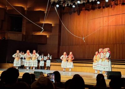 Nakon Muzeja zaboravljenih priča učenike smo poveli na kratak razgled centra grada, a nakon toga uputili smo se do Koncertne dvorane Vatroslava Lisinskog. Ispred dvorane okupili su se učenici mnogobrojnih hrvatskih škola koji su na isti način kao i mi došli posjetiti dvoranu i prisustvovati školskome satu s Ladom. „Školski sat s Ladom” popularni je projekt Ansambla LADO koji se izvodi od početka 2023. godine. U sklopu ove matineje, Ansambl je predstavio učenicima vrhunsku tradicijsku umjetnost, kroz ples i pjesmu njegovih profesionalnih umjetnika – plesača pjevača i glazbenika. Uostalom učenici petih i šestih razreda uče u školi o hrvatskoj glazbenoj baštini. Ova izvedba, kako joj i samo ime kaže, traje jedan školski sat tj. 45 minuta, a inače se izvodi u Velikoj plesnoj dvorani Ansambla LADO. Posebnost tog projekta je u tome što jedini profesionalni folklorni nacionalni ansambl najmlađoj publici je prezentirao sve bogatstvo hrvatske tradicijske umjetnosti, ukazujući na posebnost njezinih regija, ali i umjetničku jedinstvenost Ansambla.