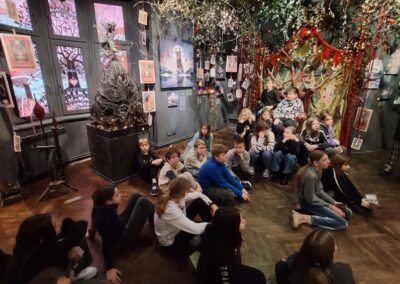Na put smo krenuli autobusima Varaždintoursa u 7.30 ispred škole. Po dolasku u Zagreb u centru grada, podijelili smo se u tri grupe zbog organizacijskih uputa Muzeja zaboravljenih priča – kuće čudesa iz hrvatskih narodnih predaja. Muzej se nalazi u Ilici 26 na prvome katu. Po dočeku predstavio nam se multimedijski umjetnik Zdenko Bašić, voditelj muzeja. Učenici su se u prostorijama muzeja susreli sa širokom lepezom priča i sjećanja iz djetinjstva, bilježeći kazivanja u neumornim putovanjima po ruševnim selima, zaboravljenim šumama i planinama ove zemlje. Čudesan spektar više od stotinu magičnih stvorenja i pojava koja su nastanjivala maštu i vrijeme kada se svijet ljudi i vila preklapao. Voditelj svojoj pričom na taj način stvorio je jedinstveni svijet davno zaboravljenih priča, ali sada opipljivih i doživljenih u njegovu jedinstvenom stilu kombinirajući suvremene tehnike i medije sa začuđujućim svijetom mitske prošlosti.