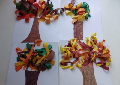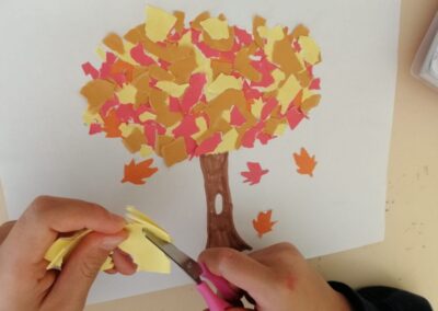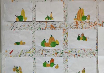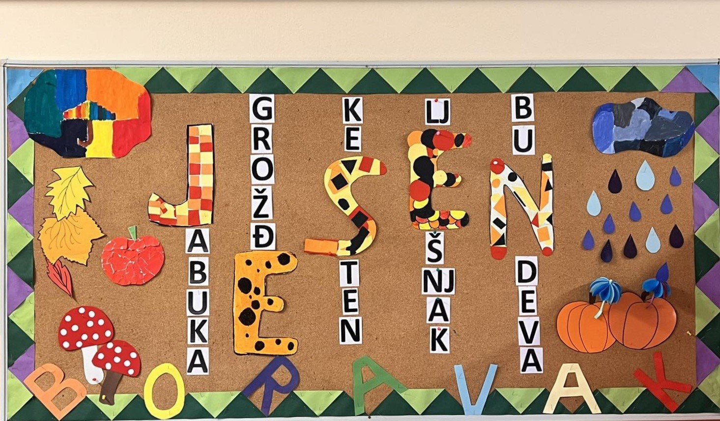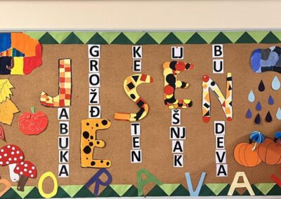 U našem produženom boravku jesen je vesela i razigrana. Izrađujemo ukrase od šarenog lišća i kestena, učimo o plodovima jeseni i crtamo šume u toplim bojama. Nakon domaćih zadaća igramo društvene igre i razgovaramo o jeseni.