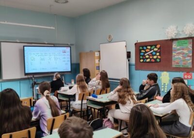 8.b razred pratio je predavanje „Matematičko programiranje – kako pomoću matematike donositi pametne odluke“ (izv. prof. dr. sc. B. Novoselnik). Saznali su kako se matematika primjenjuje u rješavanju stvarnih problema – od planiranja i donošenja odluka do optimizacije ograničenih resursa. Posebno ih je zainteresirao primjer „tvornice čokolade“, u kojem su izračunavali kako postići najveću zaradu uz zadane uvjete i ograničenja.