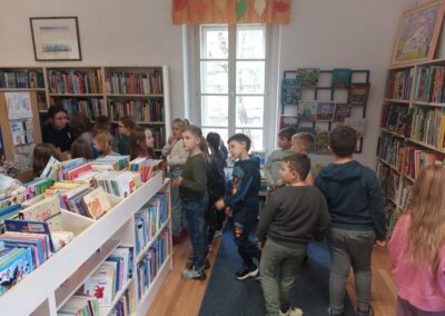 Učenici 2.b i 2.c razreda posjetili su dječji odjel Gradske knjižnice Metel Ožegović. Knjižničarke su ih srdačno dočekale, a zatim su s velikim interesom razgledavali police pune slikovnica, bajki i pustolovnih priča. Neki su učenici pronašli svoje omiljene naslove, dok su drugi istraživali. Posjet je završio čitanjem priče i razgovorom o jednom, ne tako strašnom, čudovištu u knjizi.