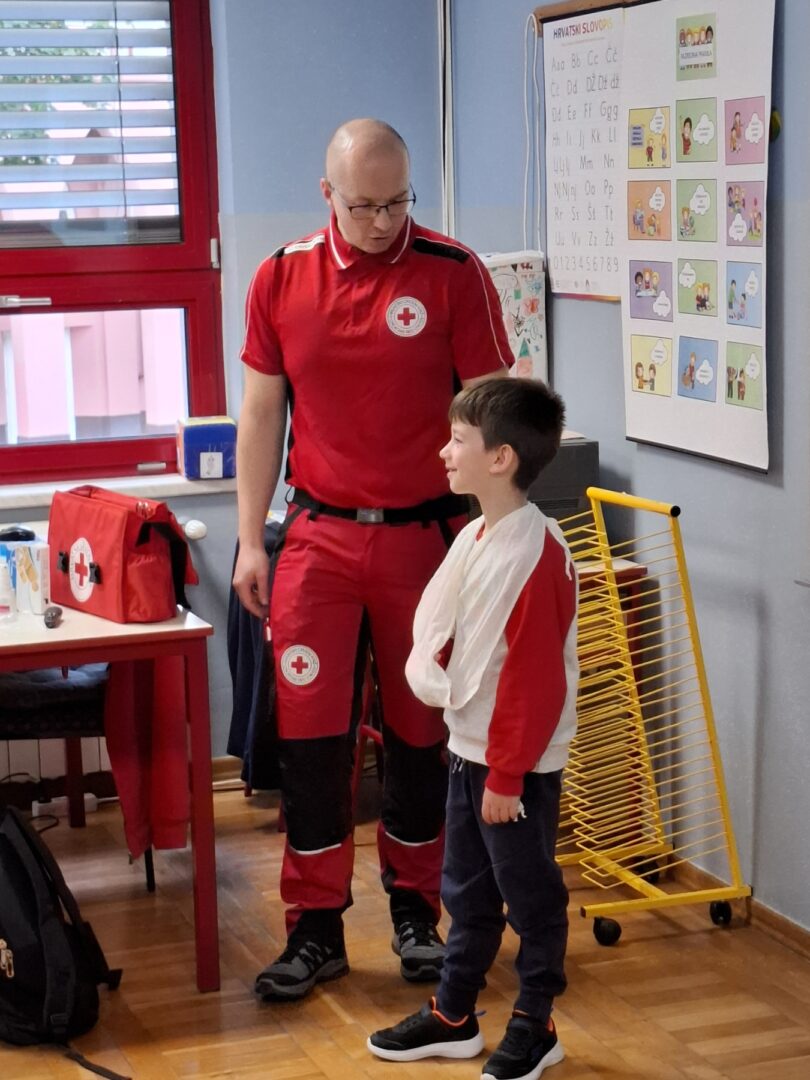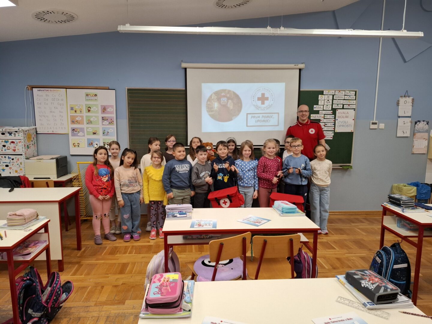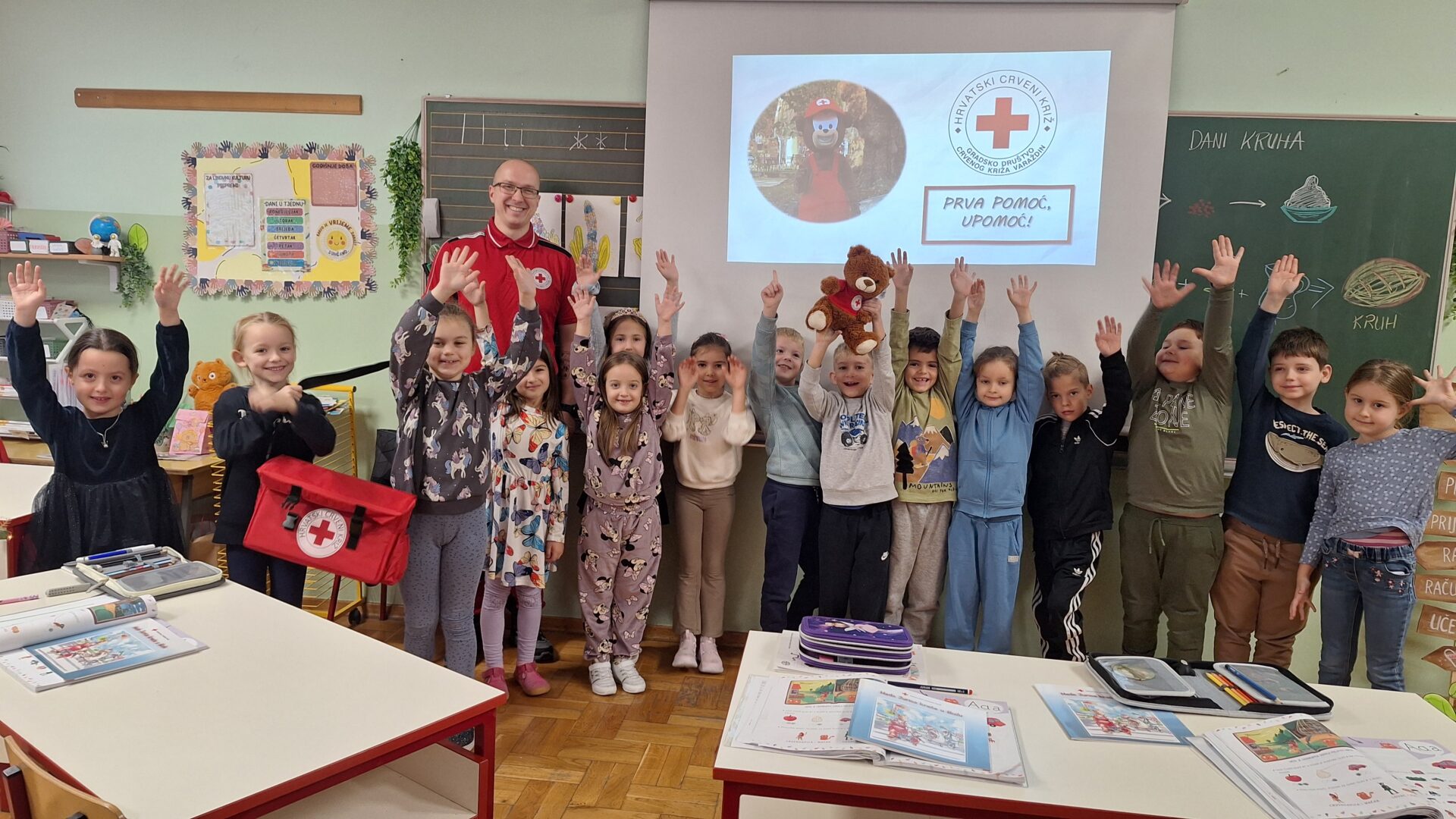 Gradsko društvo Crvenog križa Varaždin i ove je godine s učenicima prvih razreda naše škole provelo zanimljivu i poučnu radionicu „Prva pomoć, upomoć!”. Cilj radionice bio je upoznati djecu s djelovanjem Crvenog križa te ih na primjeren način uvesti u svijet osnova prve pomoći.