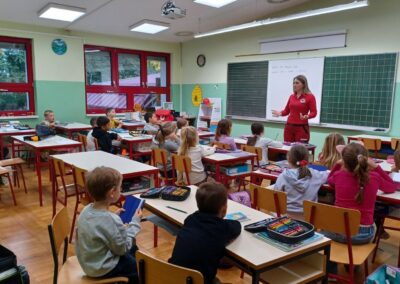 Kroz interaktivno predavanje i praktične vježbe, učenici su naučili što znači pružiti prvu pomoć i kako reagirati u različitim opasnim situacijama. Uz stručno vodstvo suradnika GDCK-a Varaždin, mali su „spasioci“ isprobali stavljanje zavoja i flastera, imobilizaciju lakta, zaustavljanje krvarenja sterilnim kompresama i druge važne postupke.
