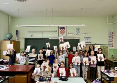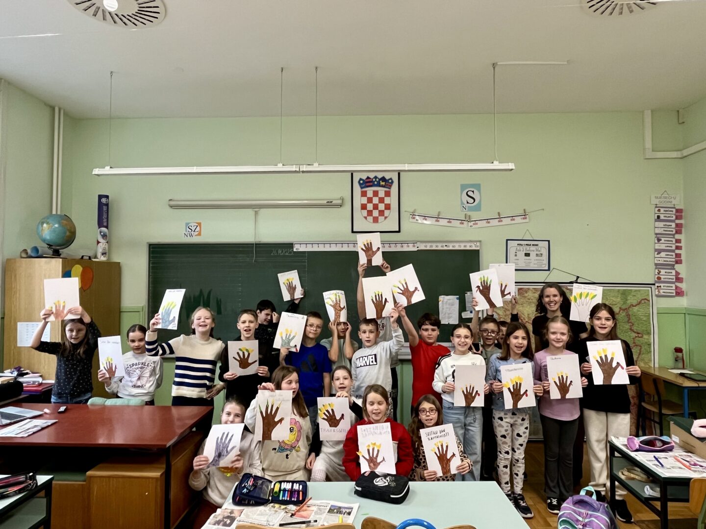 Uz njihovu pomoć učenici su izradili i “turkey hands” – purane oblikovane otiskom vlastite ruke, tradicionalni likovni rad djece u Americi povodom Thanksgivinga.
