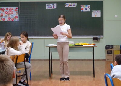 Aktivnosti koje smo tijekom dva školska sata proveli u veselom ozračju i prijateljskom druženju bile su: Predstavi se, Pitam te, pitaj me, Sve što volimo, Dan za tebe i Pozdrav.