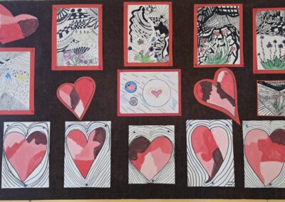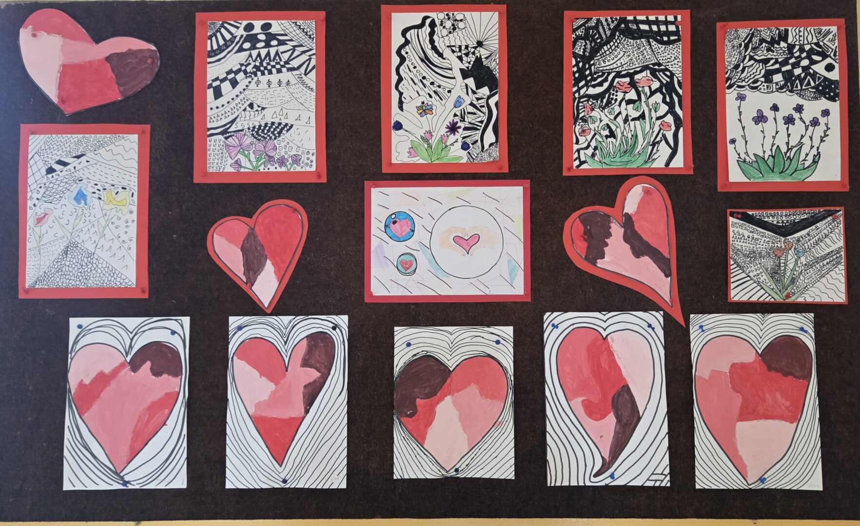 Učenici 4.b razreda poigrali su se čistoćom boje i naslikali najprepoznatljiviji simbol ljubavi – srce. Učenici 2.a nacrtali su buket cvijeća iz mašte. Našim smo radovima ukrasili pano u hodniku škole.