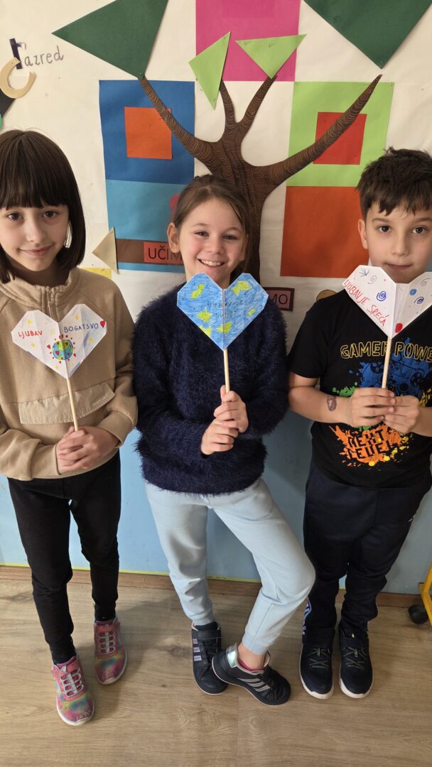 Učenici 3. skupine produženog boravka (2.a i 4.b) različitim aktivnostima obilježili su Valentinovo. Valentinovo ili Dan sv. Valentina spomendan je na svetog Valentina koji se obilježava 14. veljače, a poznat je i kao Dan zaljubljenih.